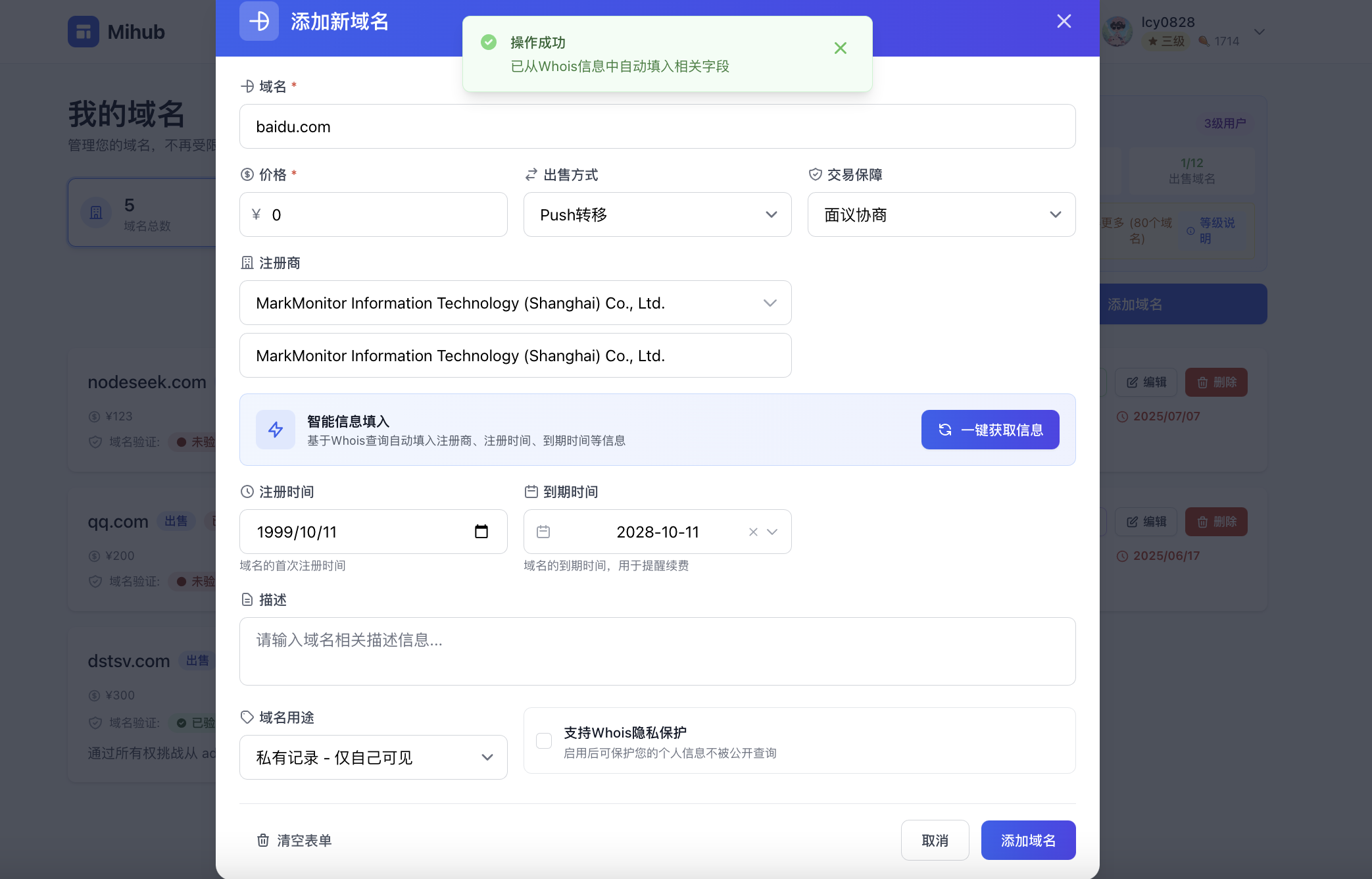 在大量的域名交易帖子充斥在论坛上,总觉得应该有个更好的解决方案,于是趁着这股热劲,我创建了这个域名交易平台!