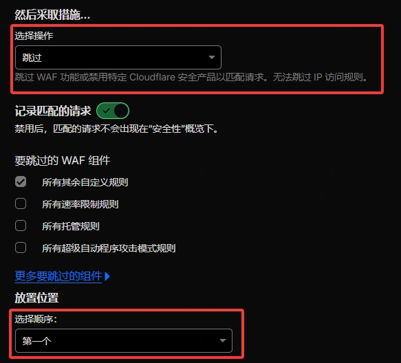 往下滑, 选择操作为跳过, 位置应该放在上一个已验证机器人跳过规则后.