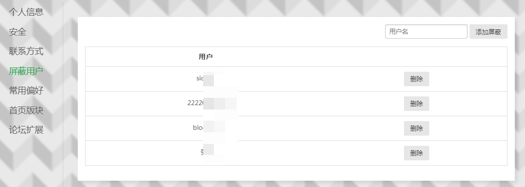 设置--屏蔽一些用户
