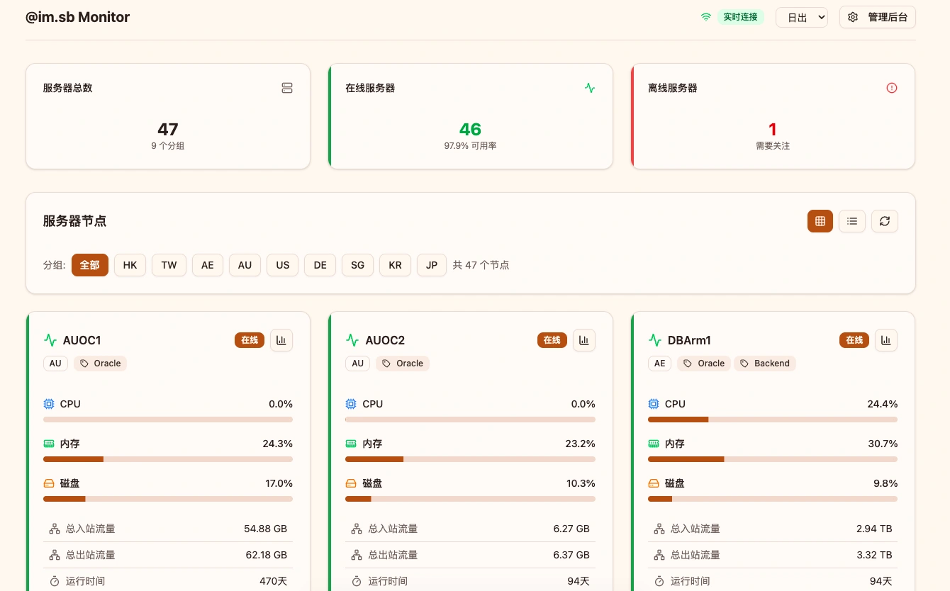 一个基于 Tailwind CSS 和 shadcn/ui 设计的现代化 Komari 主题。
