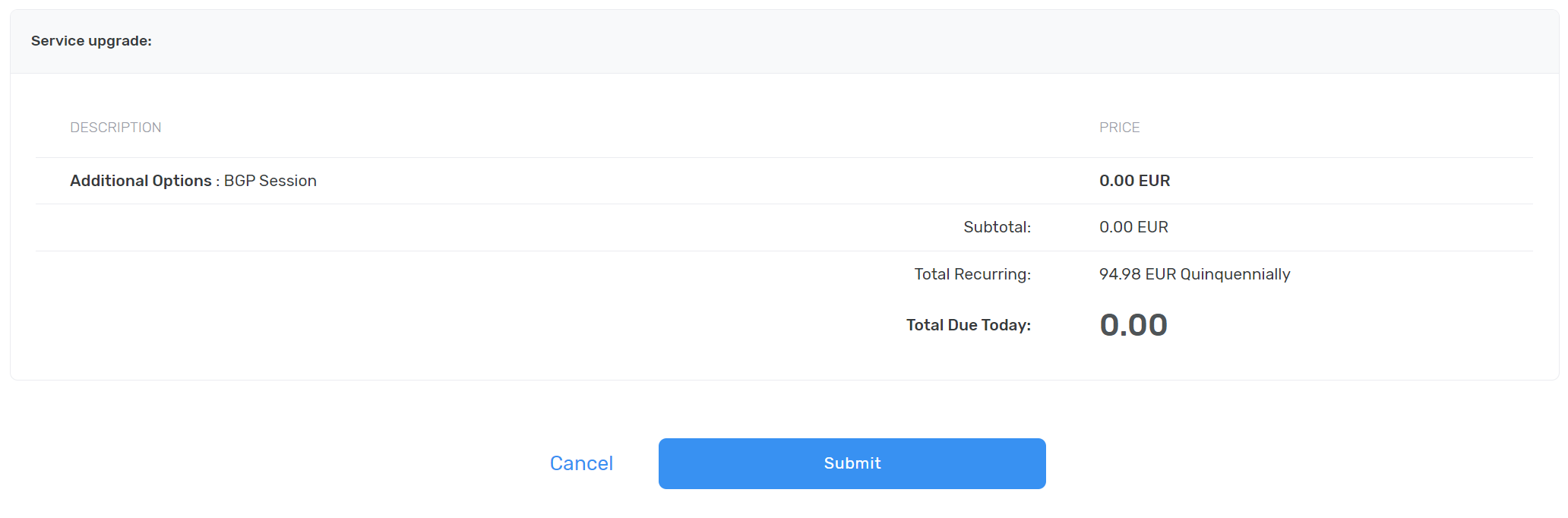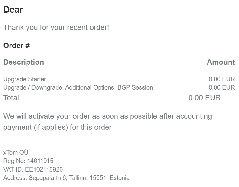 - 很快,收到邮件,开通BGP Session成功,账单金额为0