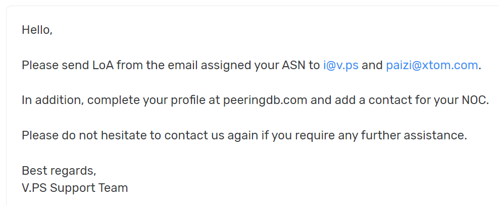 - 后续通过工单提交LoA即可开启自己的BGP之旅