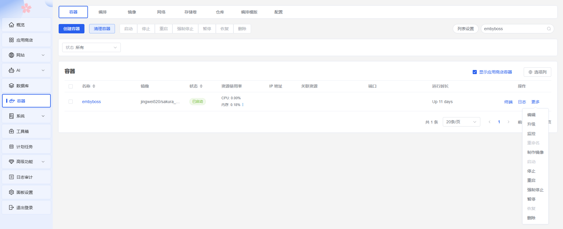 如果发现bot无回应,可以去面板左边第六个容器,进去可以看到docker运行日志,进行重启或者删除等操作