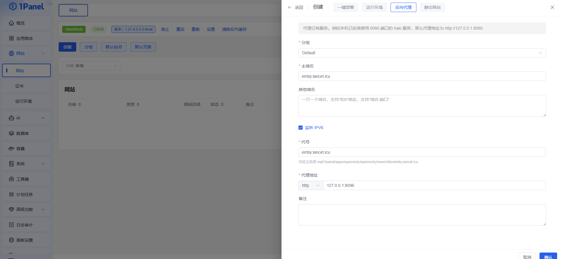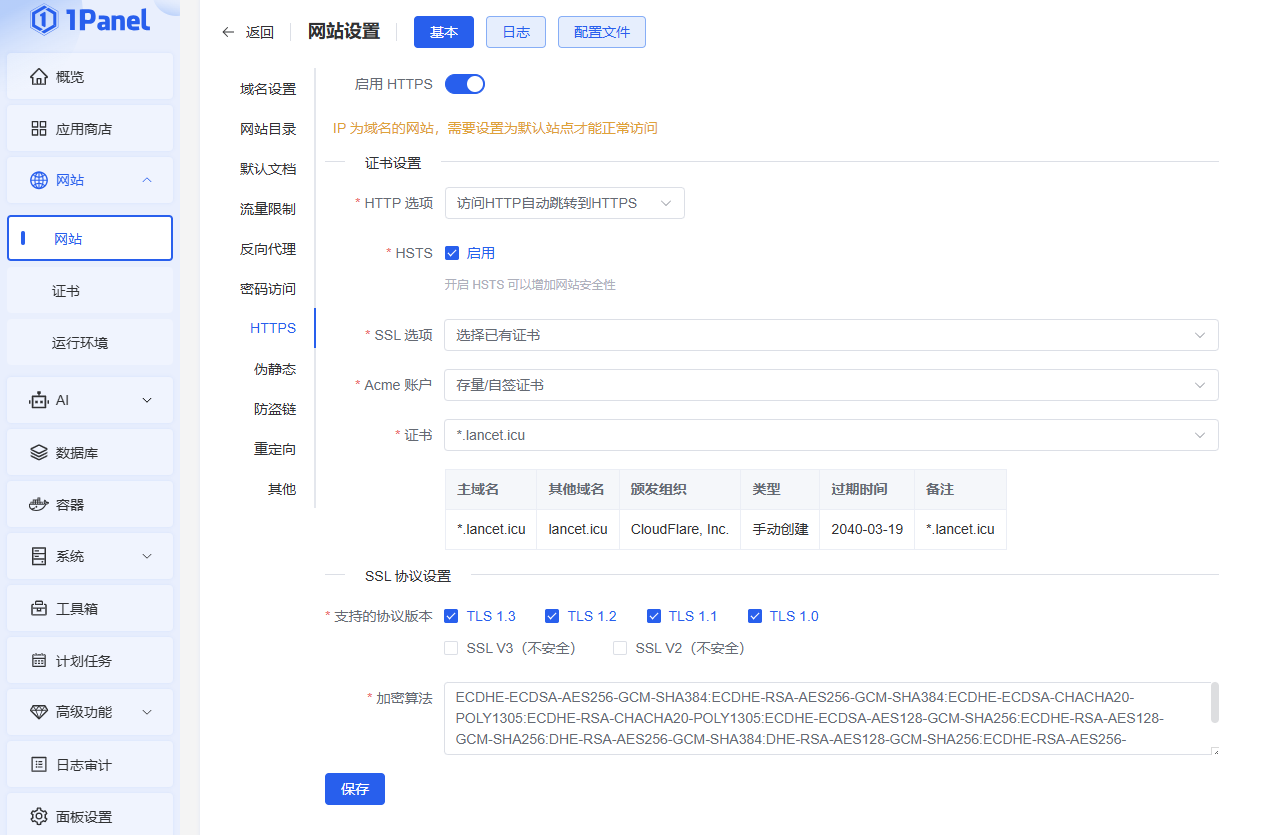 以上操作步骤一定要确认保存,否则不会生效。线路优化操作与之类似,只是需要在优化线路的机器上进行反代操作即可,大家举一反三各自发挥吧!