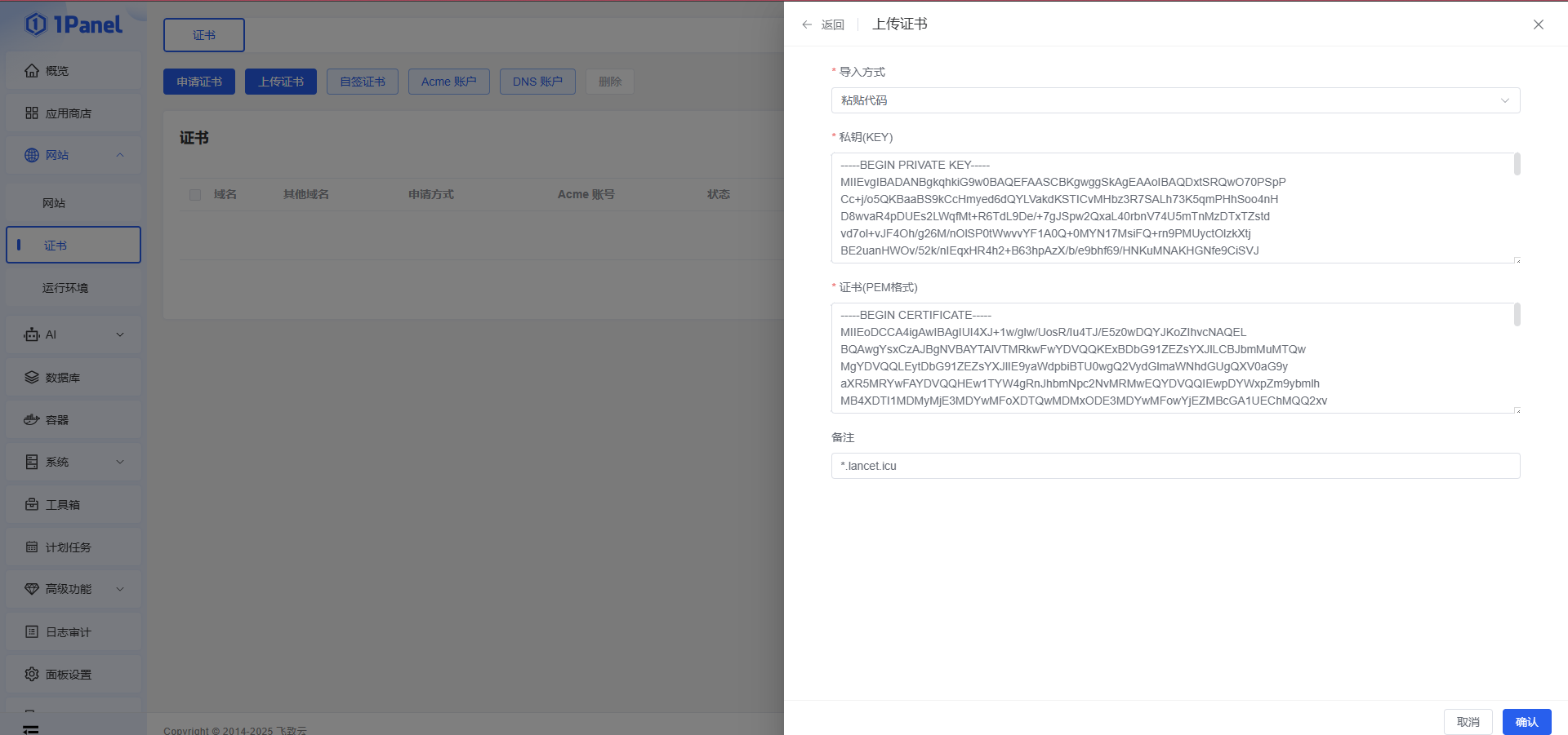 复制源证书与私钥备用,当然也有其他方法获取证书,我这里只讲述一种