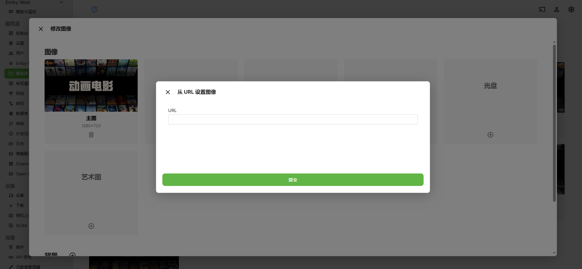 在媒体库处编辑,粘贴上文的封面URL