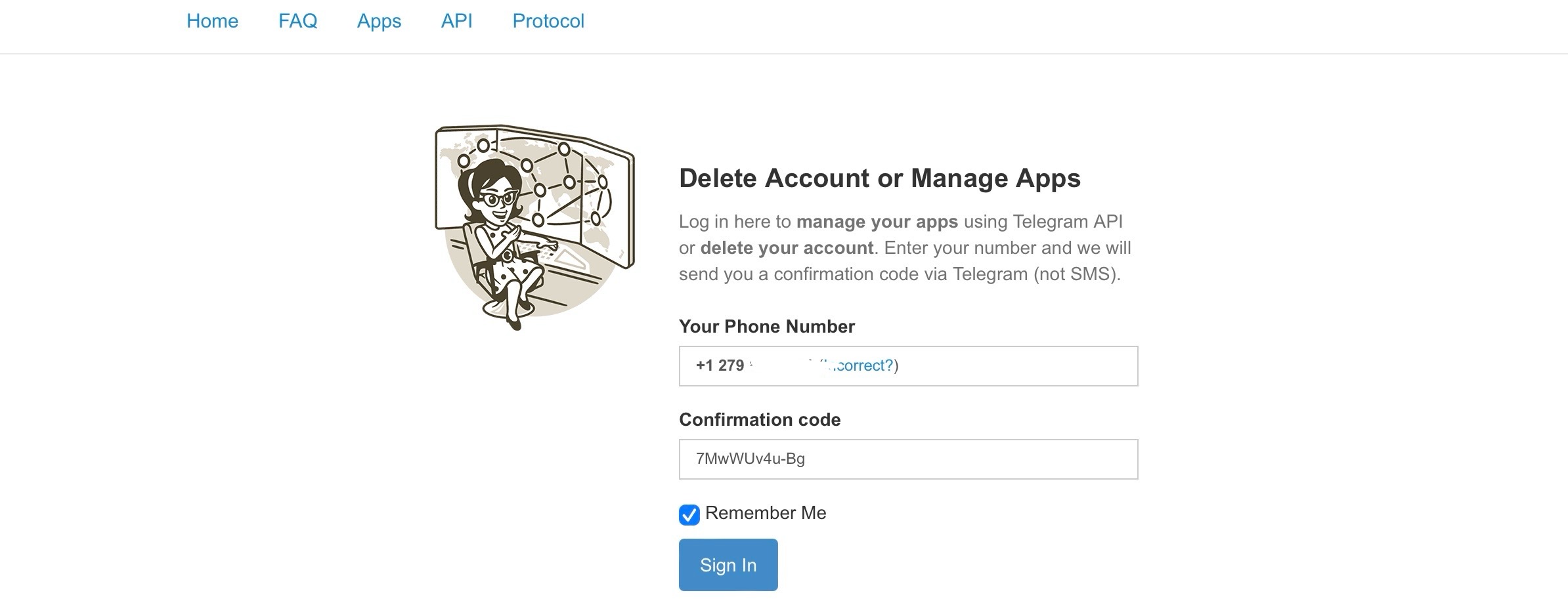 1. 登录Telegram应用管理页面https://my.telegram.org ,输入TG的手机号码进行登录