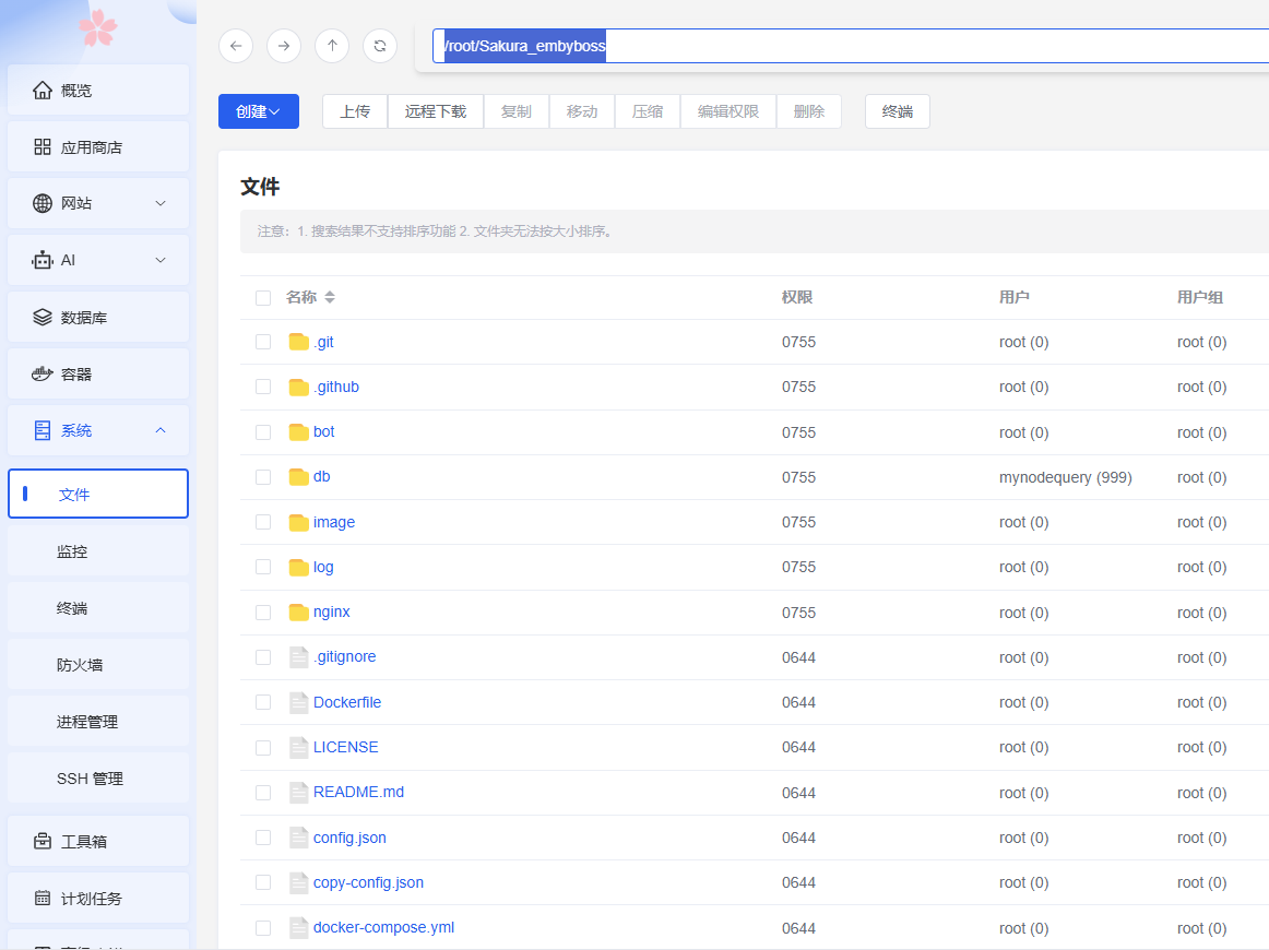 或者在如图位置直接输入:/root/Sakura_embyboss,可以实现同样的效果